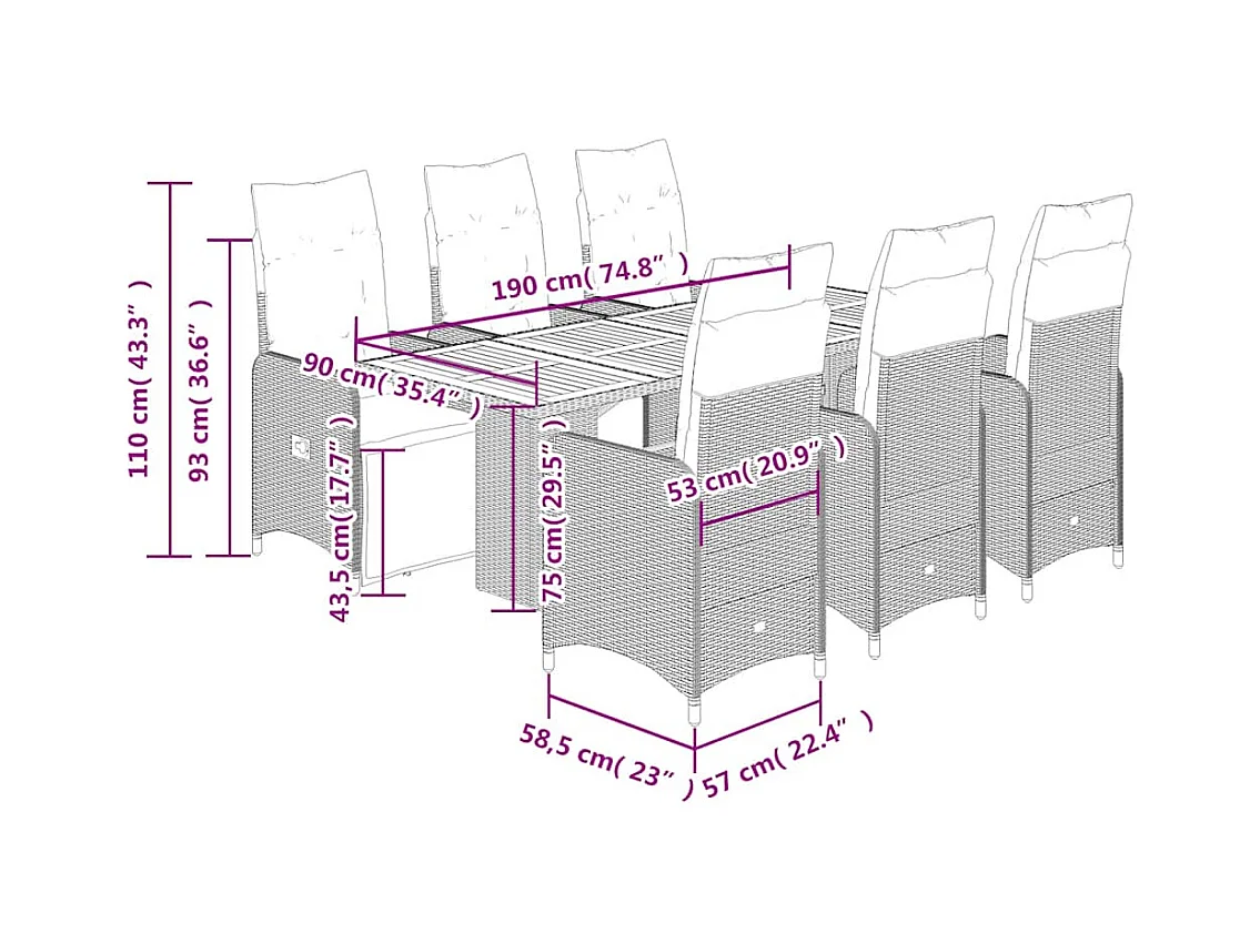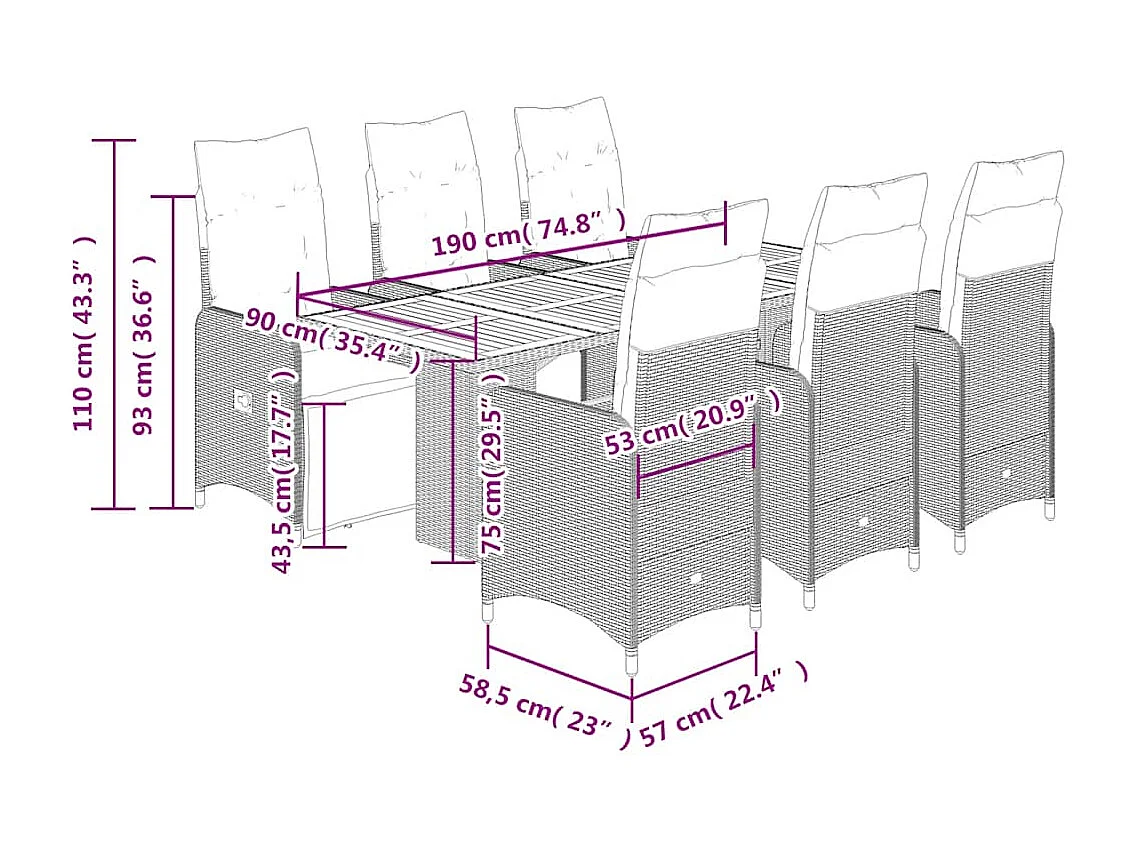 7-tlg. Garten-Essgruppe mit Kissen Schwarz Poly Rattan