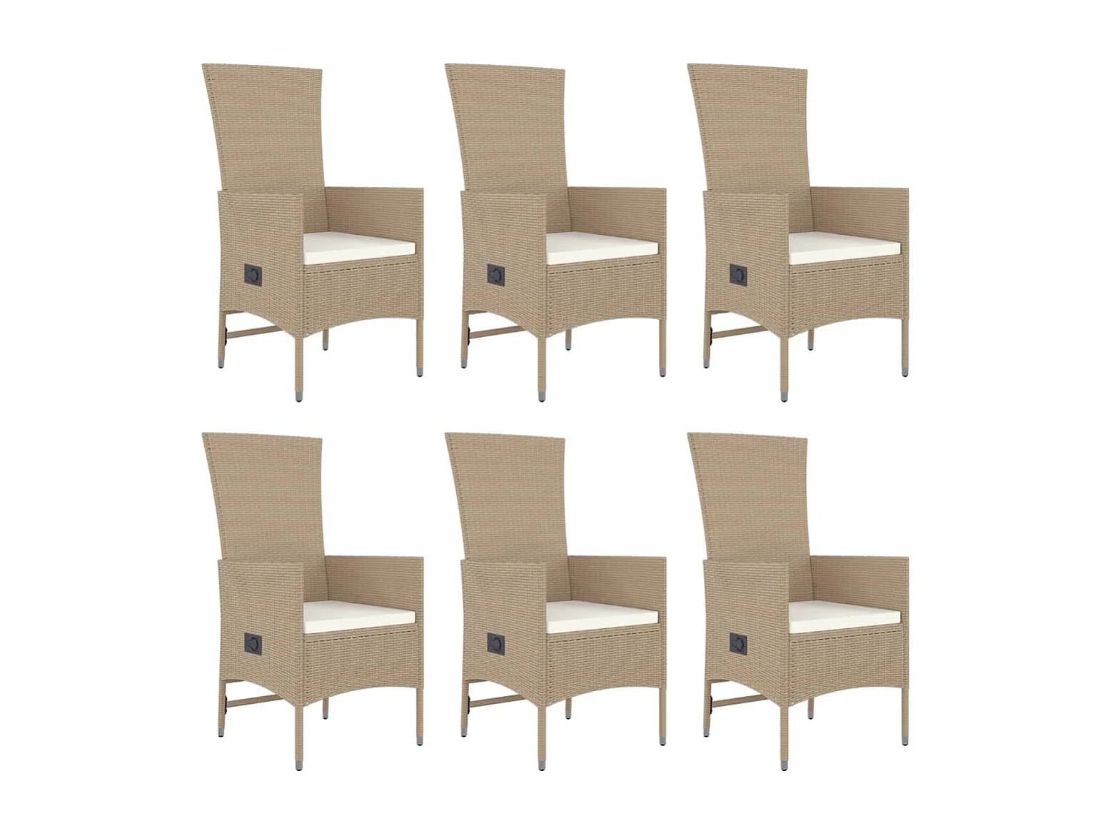 7-tlg. Garten-Essgruppe mit Kissen Beige Poly Rattan