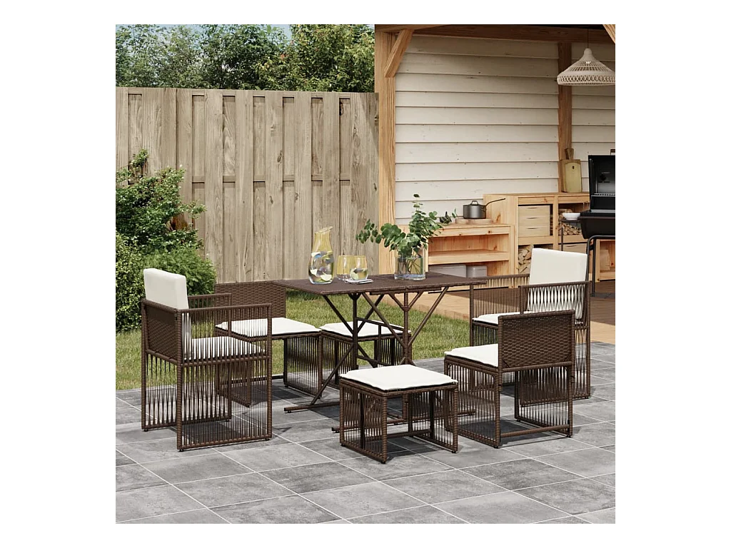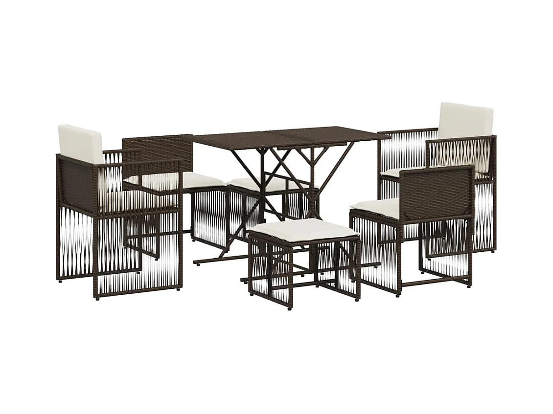 7-tlg. Garten-Essgruppe mit Kissen Braun Poly Rattan