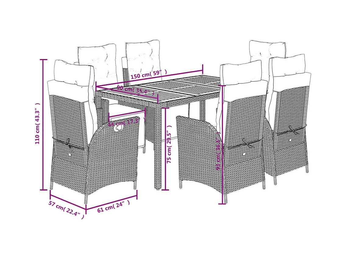 7-tlg. Garten-Essgruppe mit Kissen Schwarz Poly Rattan