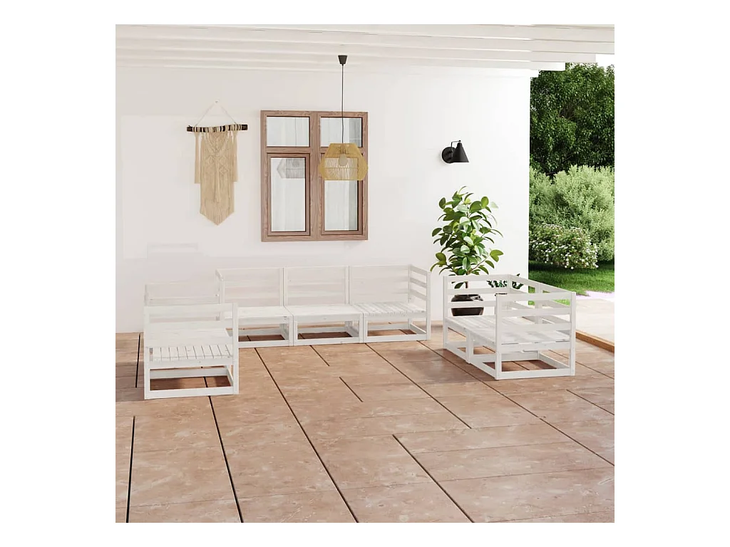 7-tlg. Garten-Lounge-Set Weiß Massivholz Kiefer
