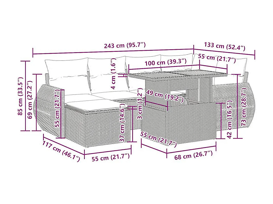 7-tlg. Garten-Sofagarnitur mit Kissen Beige Poly Rattan