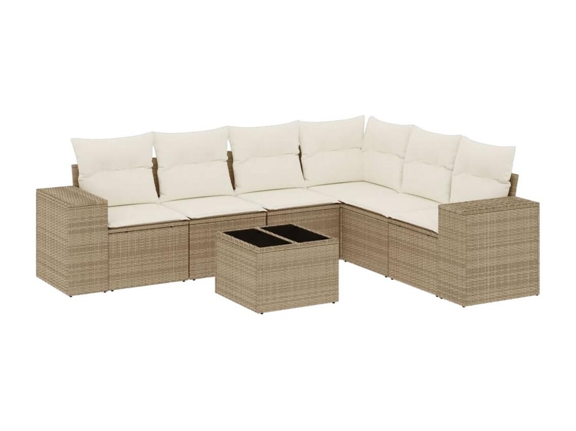 7-tlg. Garten-Sofagarnitur mit Kissen Beige Poly Rattan