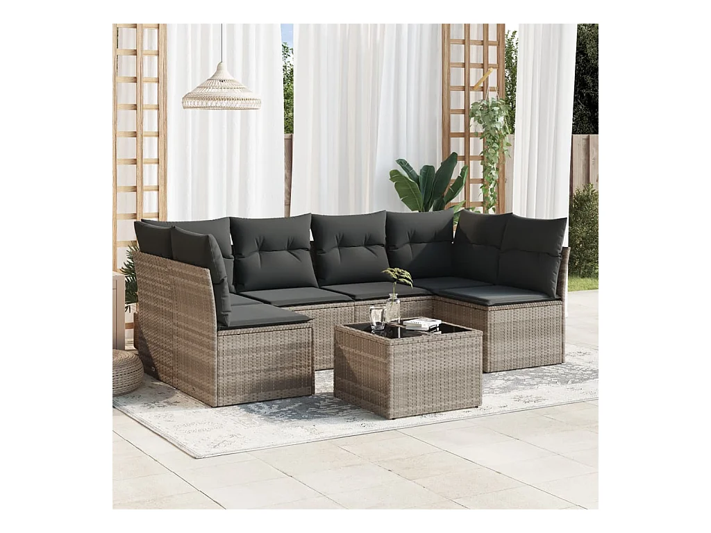 7-tlg. Garten-Sofagarnitur mit Kissen Grau Poly Rattan