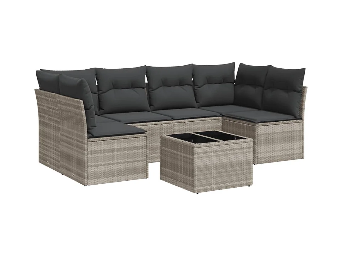 7-tlg. Garten-Sofagarnitur mit Kissen Hellgrau Poly Rattan