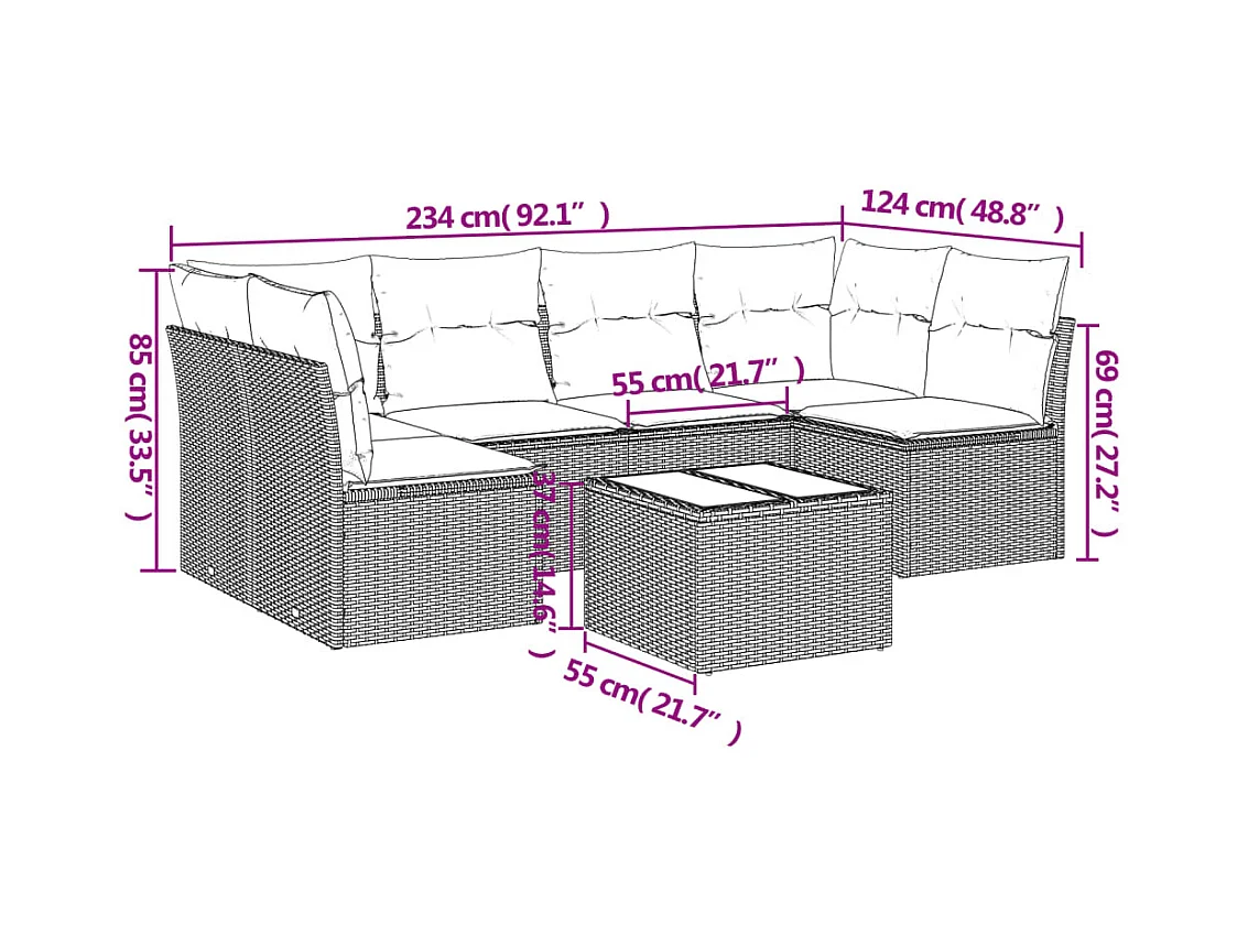 7-tlg. Garten-Sofagarnitur mit Kissen Beige Poly Rattan