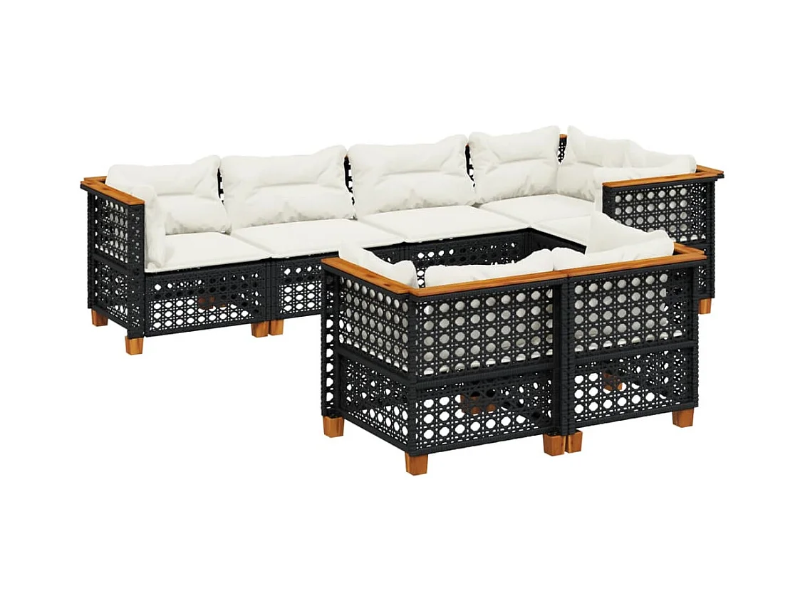 7-tlg. Garten-Sofagarnitur mit Kissen Schwarz Poly Rattan