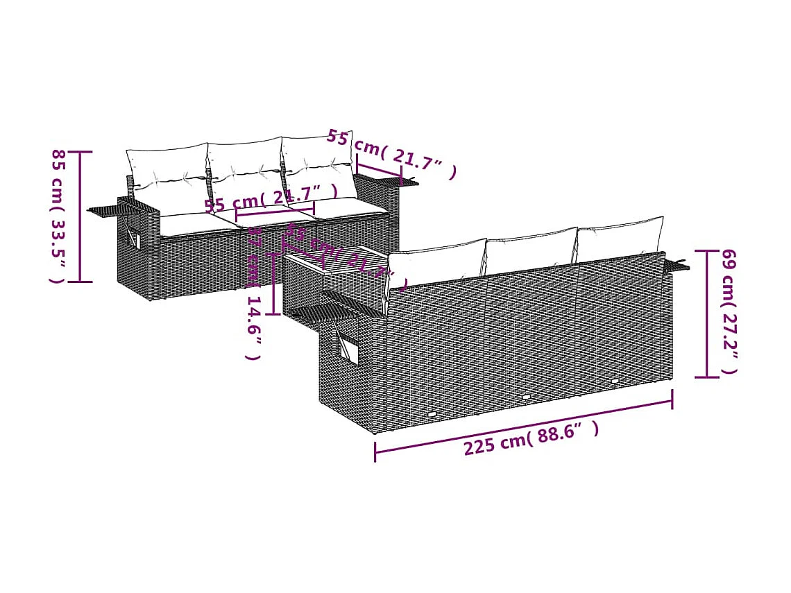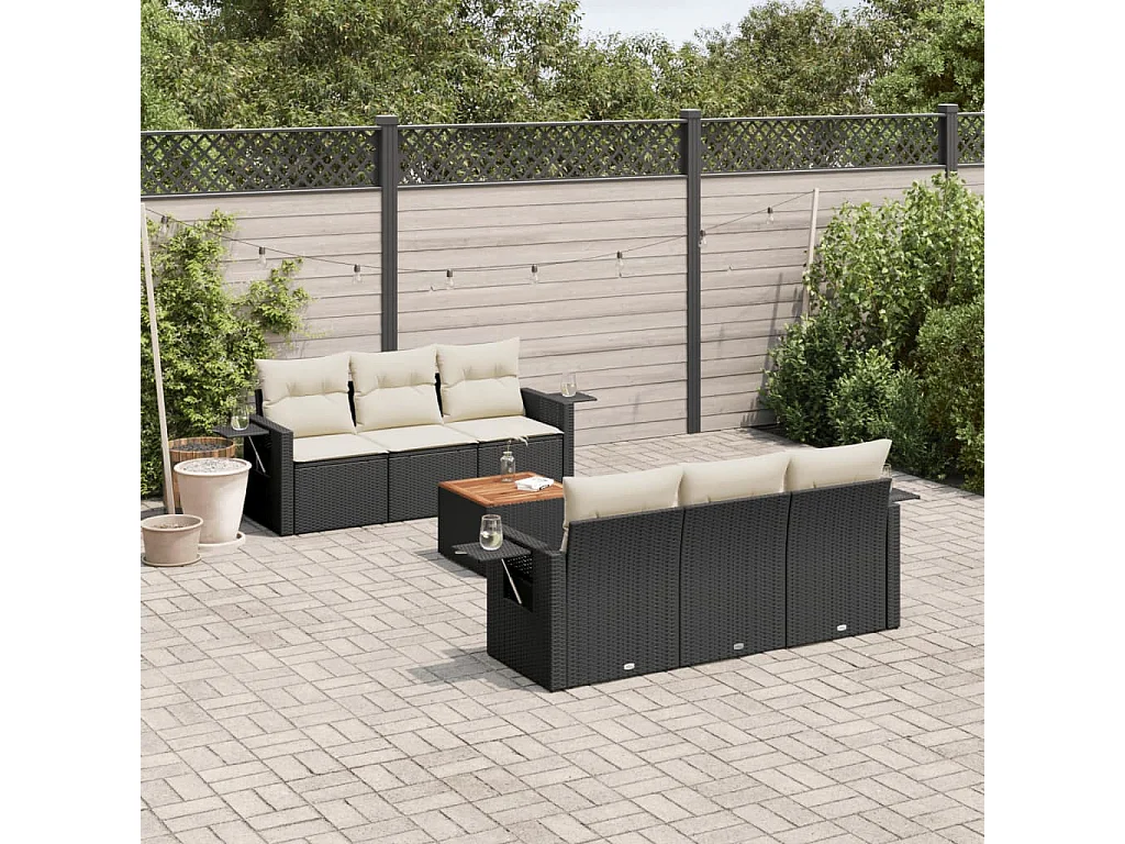 7-teilige Gartenmöbel mit schwarzen geflochtenen Harzkissen