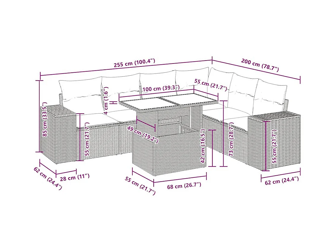 7-tlg. Garten-Sofagarnitur mit Kissen Schwarz Poly Rattan