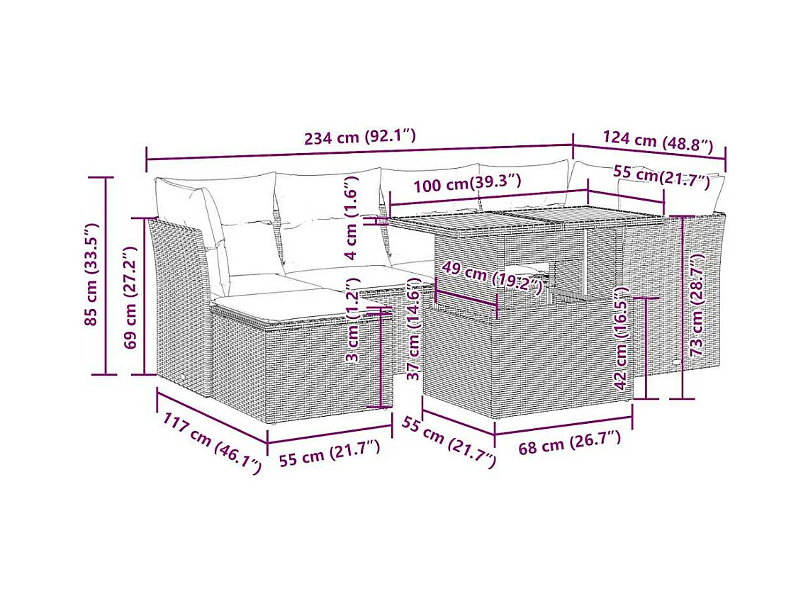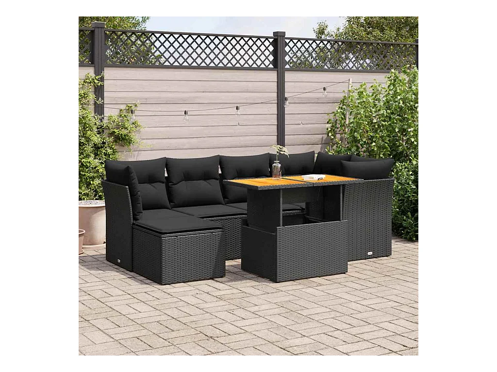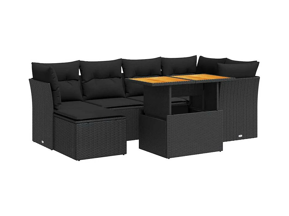 7-tlg. Garten-Sofagarnitur mit Kissen Schwarz Poly Rattan