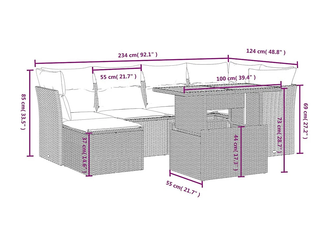 7-tlg. Garten-Sofagarnitur mit Kissen Schwarz Poly Rattan