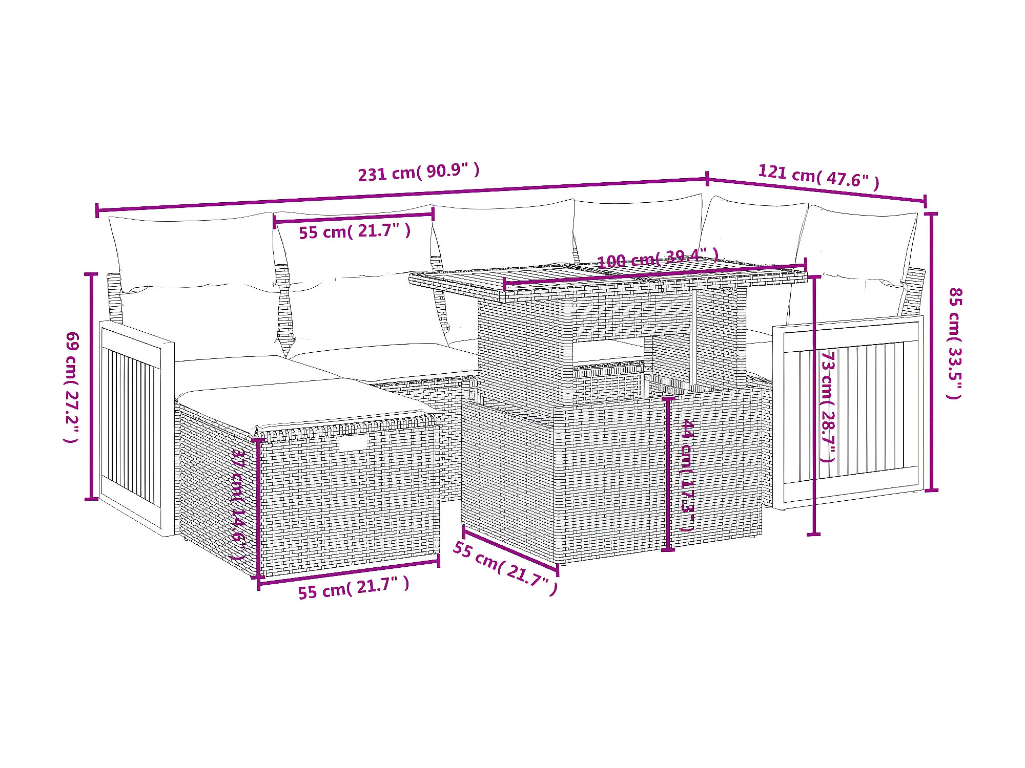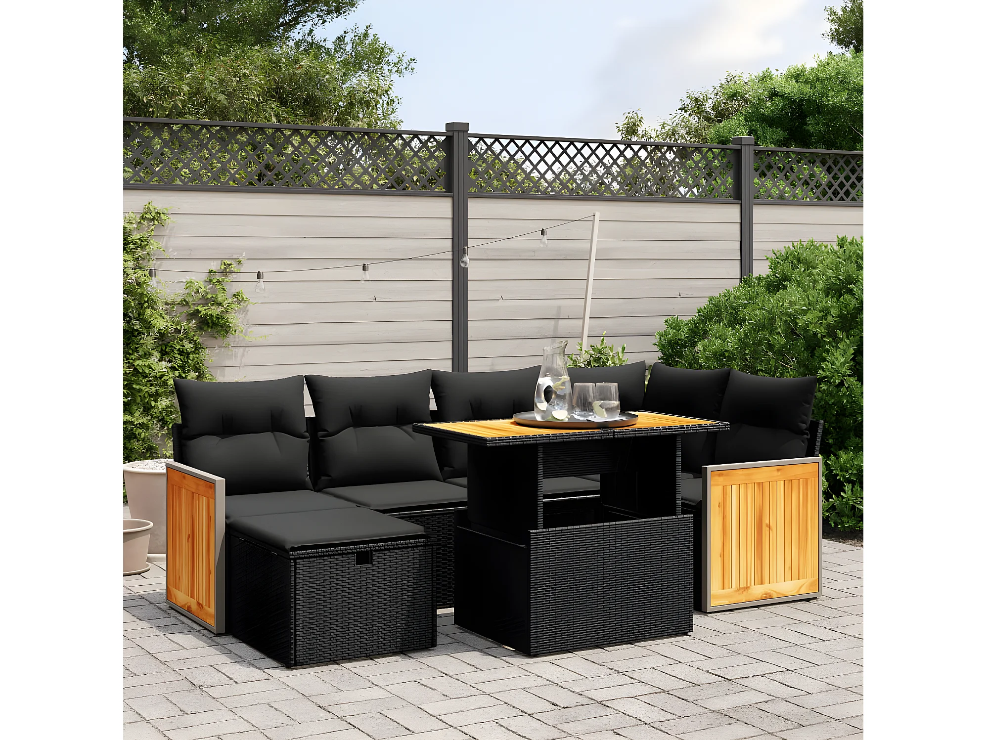 7-tlg. Garten-Sofagarnitur mit Kissen Schwarz Poly Rattan