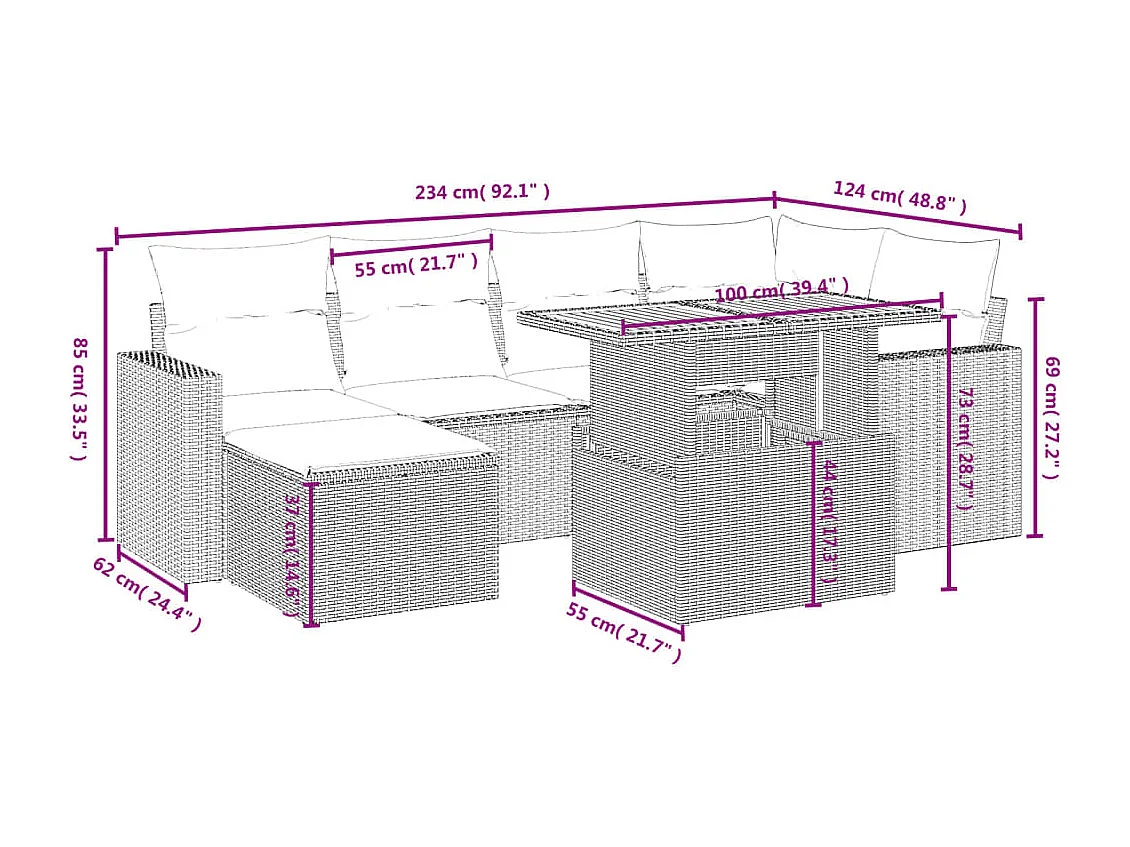 7-tlg. Garten-Sofagarnitur mit Kissen Schwarz Poly Rattan
