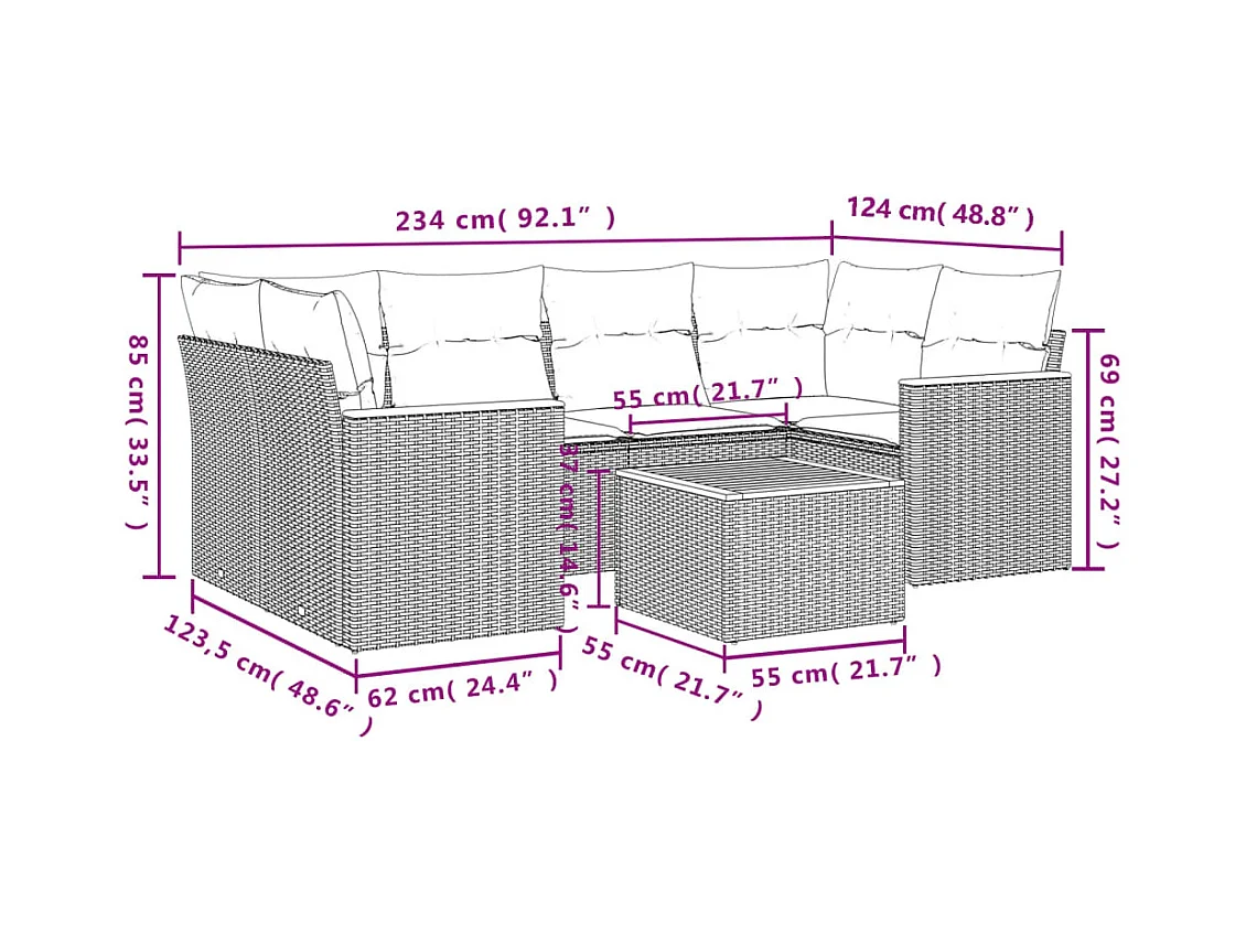 7-tlg. Garten-Sofagarnitur mit Kissen Schwarz Poly Rattan