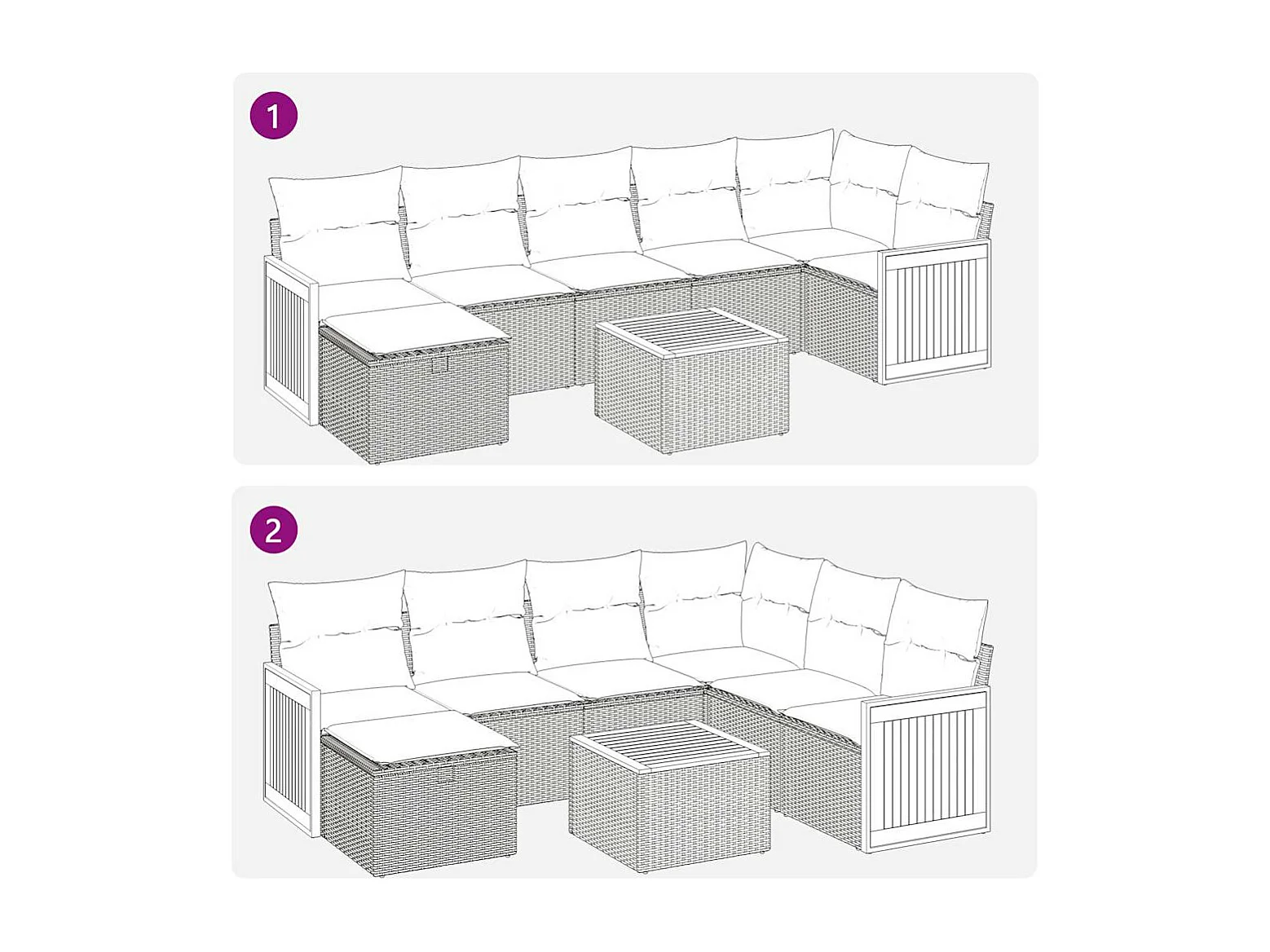 8-teiliges Gartenmöbel-Set mit grauen Kissen aus Kunstharzgeflecht