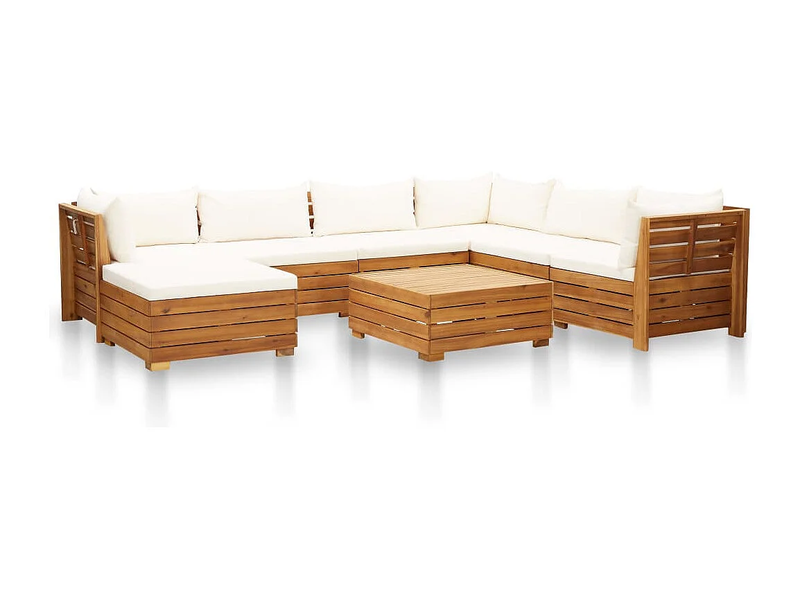 8-tlg. Garten-Sofagarnitur mit Auflagen Akazienholz Cremeweiß