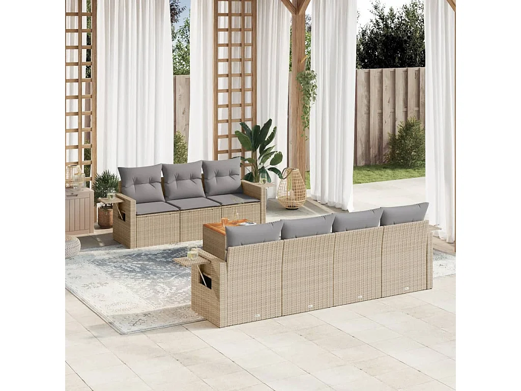 Gartenmöbel mit Kissen 8 Stück beige geflochtenes Harz