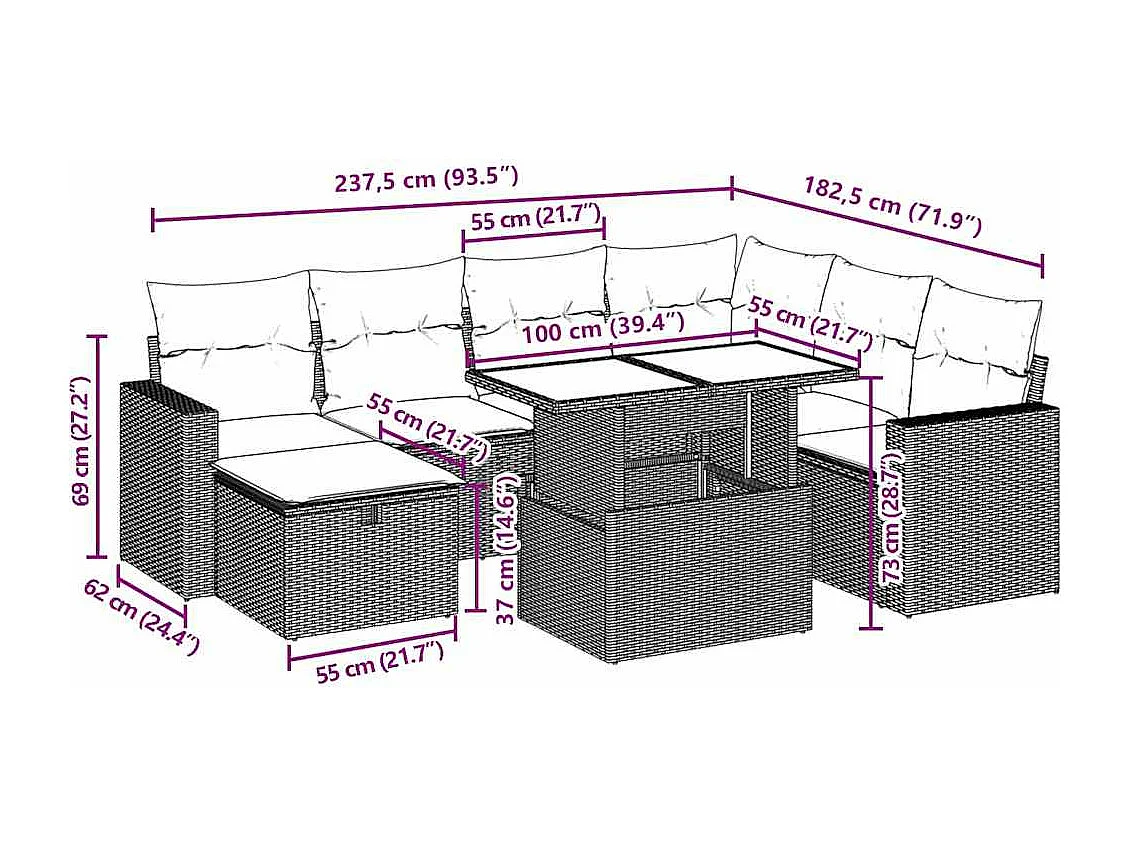 8-tlg. Garten-Sofagarnitur mit Kissen Beige Poly Rattan