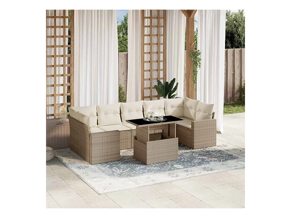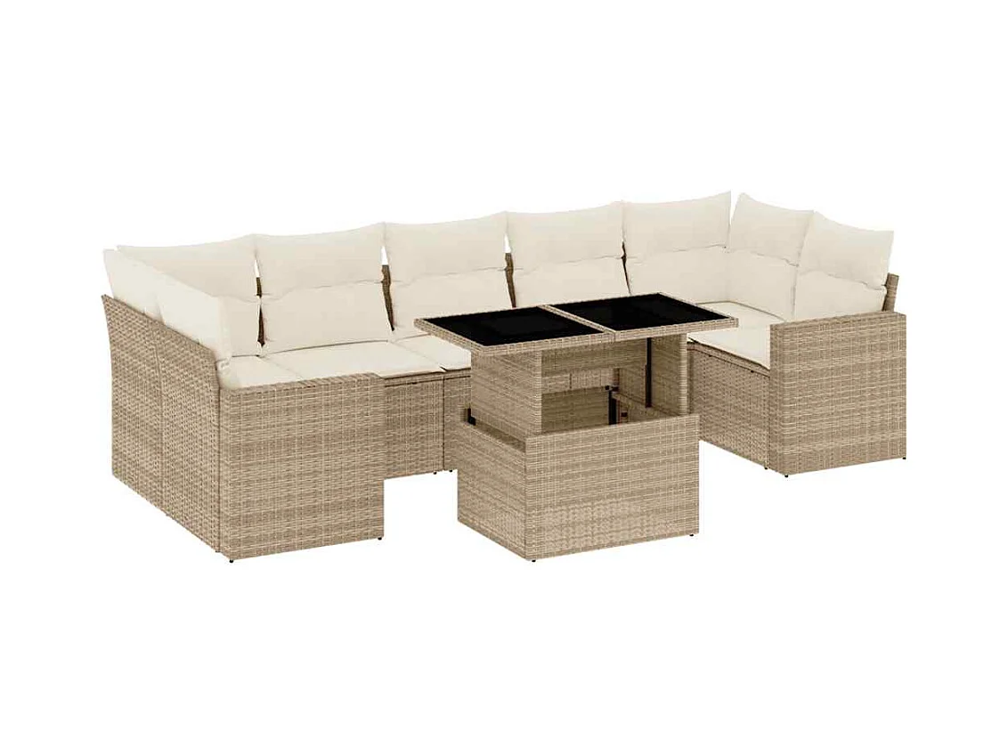8-tlg. Garten-Sofagarnitur mit Kissen Beige Poly Rattan