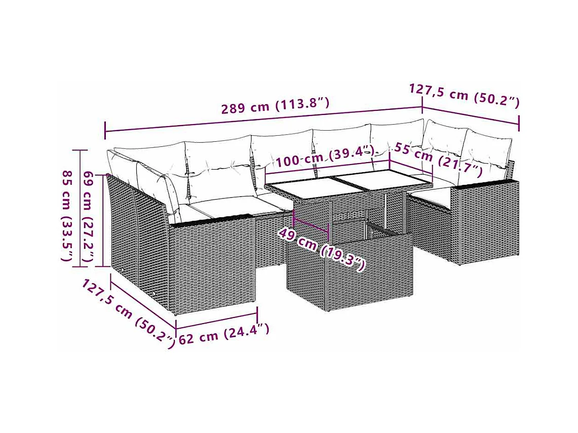 9-tlg. Garten-Sofagarnitur mit Kissen Beige Poly Rattan
