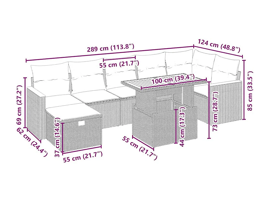 8-tlg. Garten-Sofagarnitur mit Kissen Beige Poly Rattan
