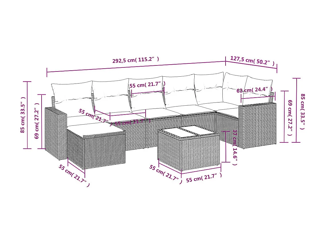 8-tlg. Garten-Sofagarnitur mit Kissen Beige Poly Rattan