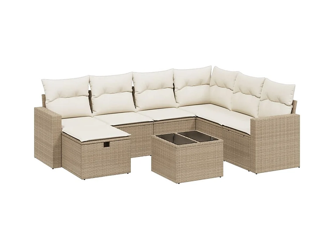 8-tlg. Garten-Sofagarnitur mit Kissen Beige Poly Rattan
