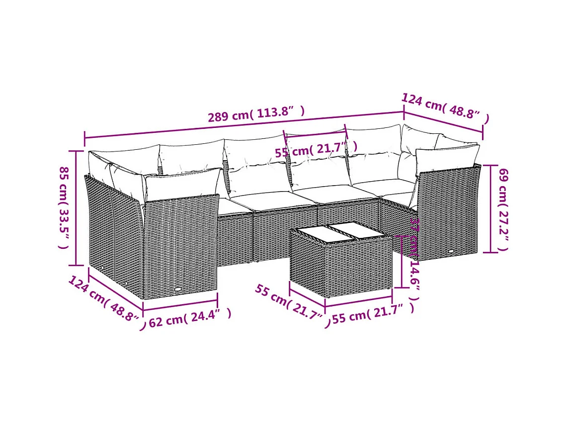 8-tlg. Garten-Sofagarnitur mit Kissen Beige Poly Rattan