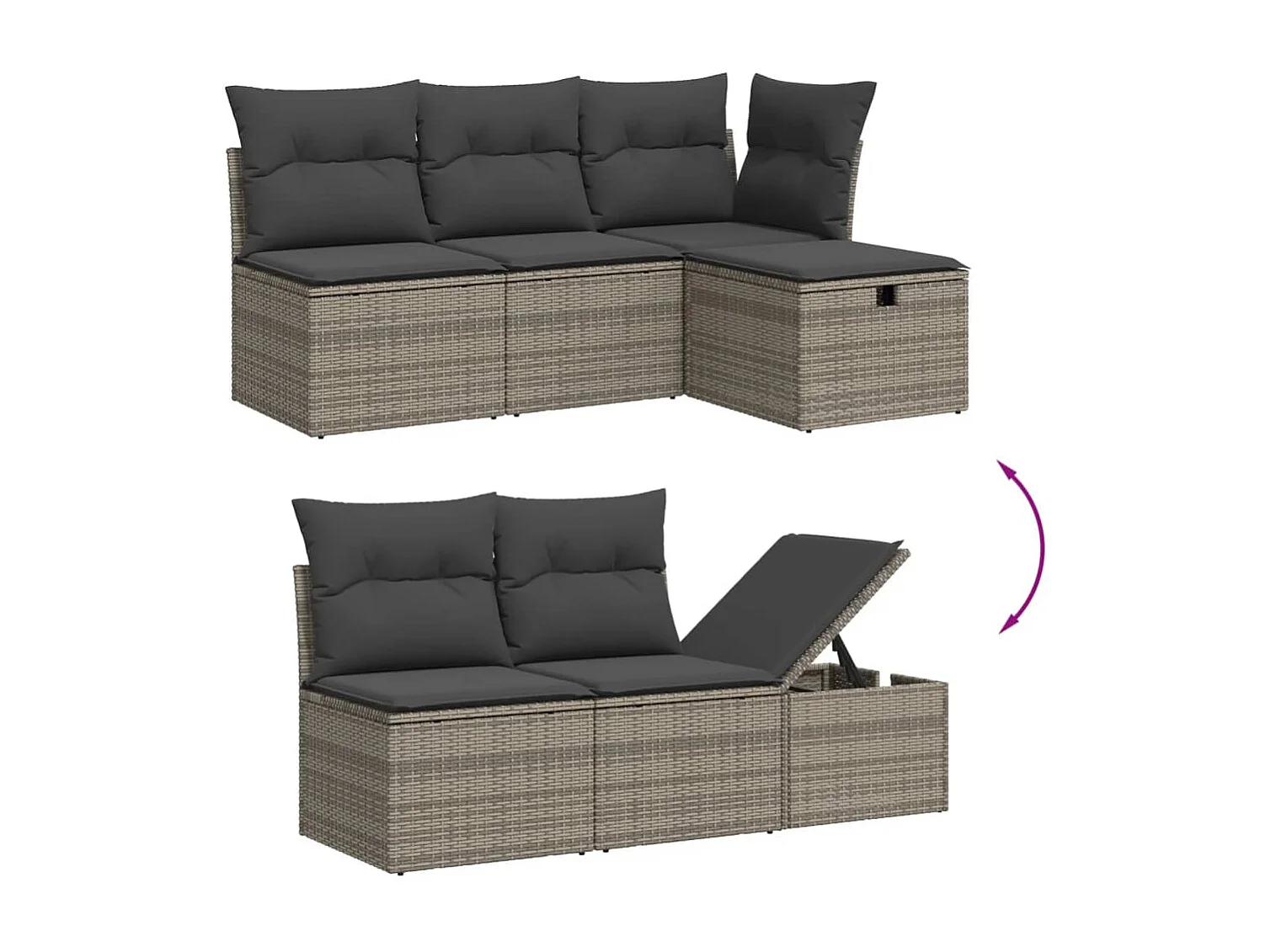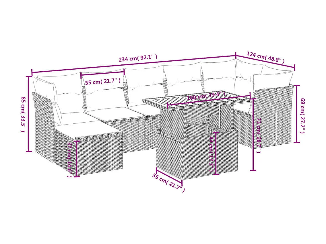 8-tlg. Garten-Sofagarnitur mit Kissen Grau Poly Rattan