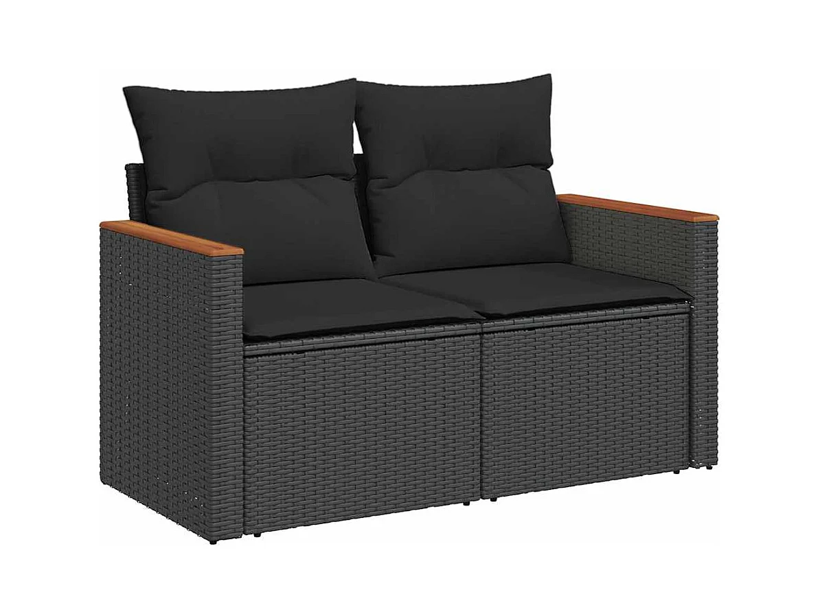 9-tlg. Garten-Sofagarnitur mit Kissen Schwarz Poly Rattan