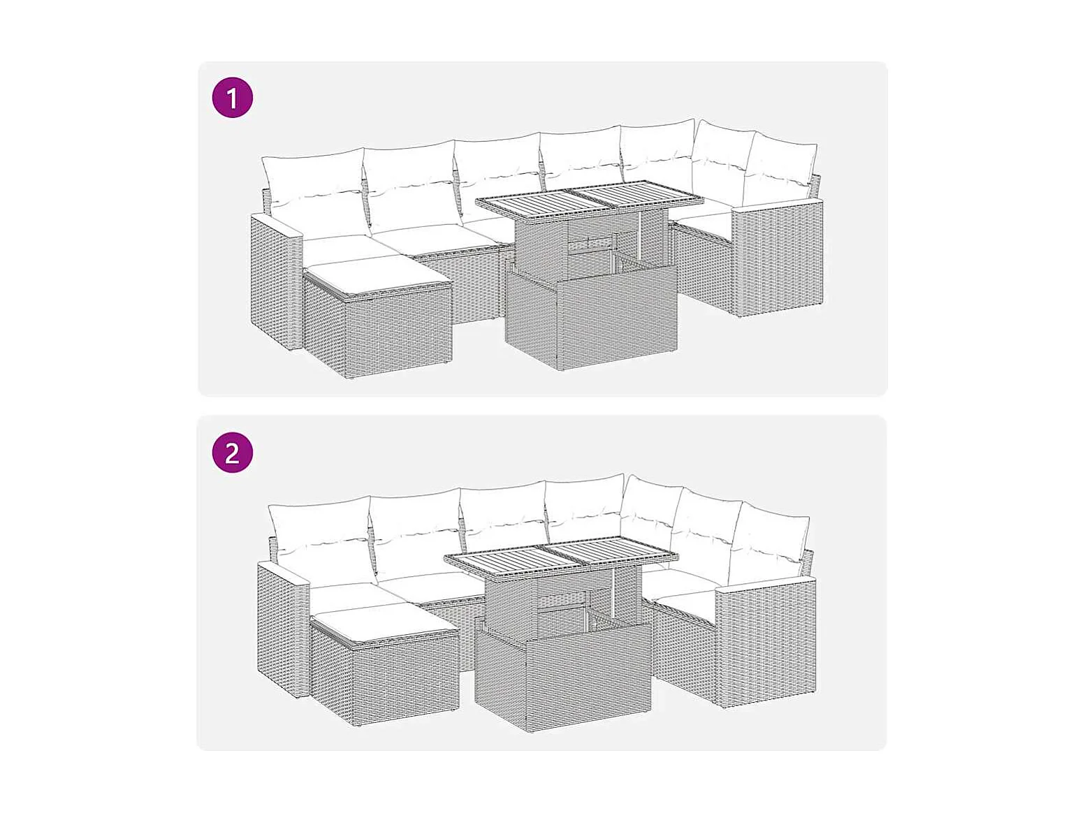 8-tlg. Garten-Sofagarnitur mit Kissen Schwarz Poly Rattan