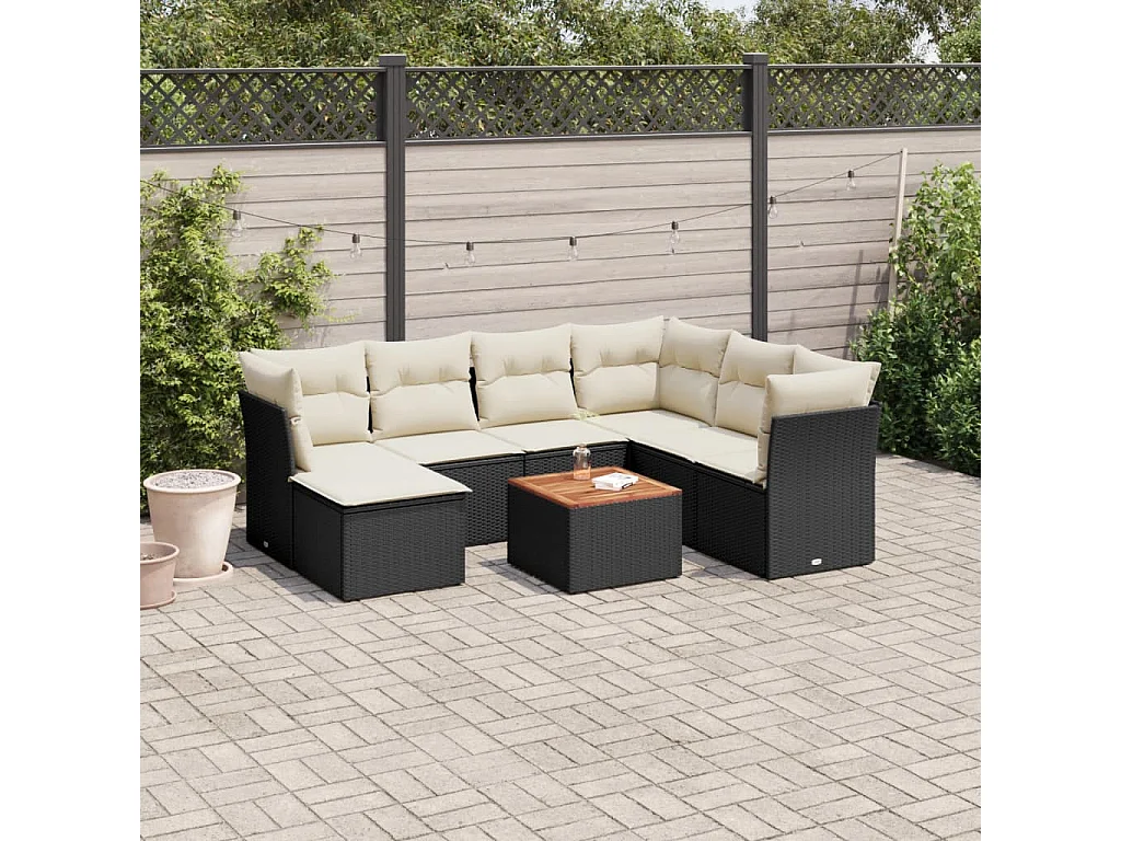 8-tlg. Garten-Sofagarnitur mit Kissen Schwarz Poly Rattan