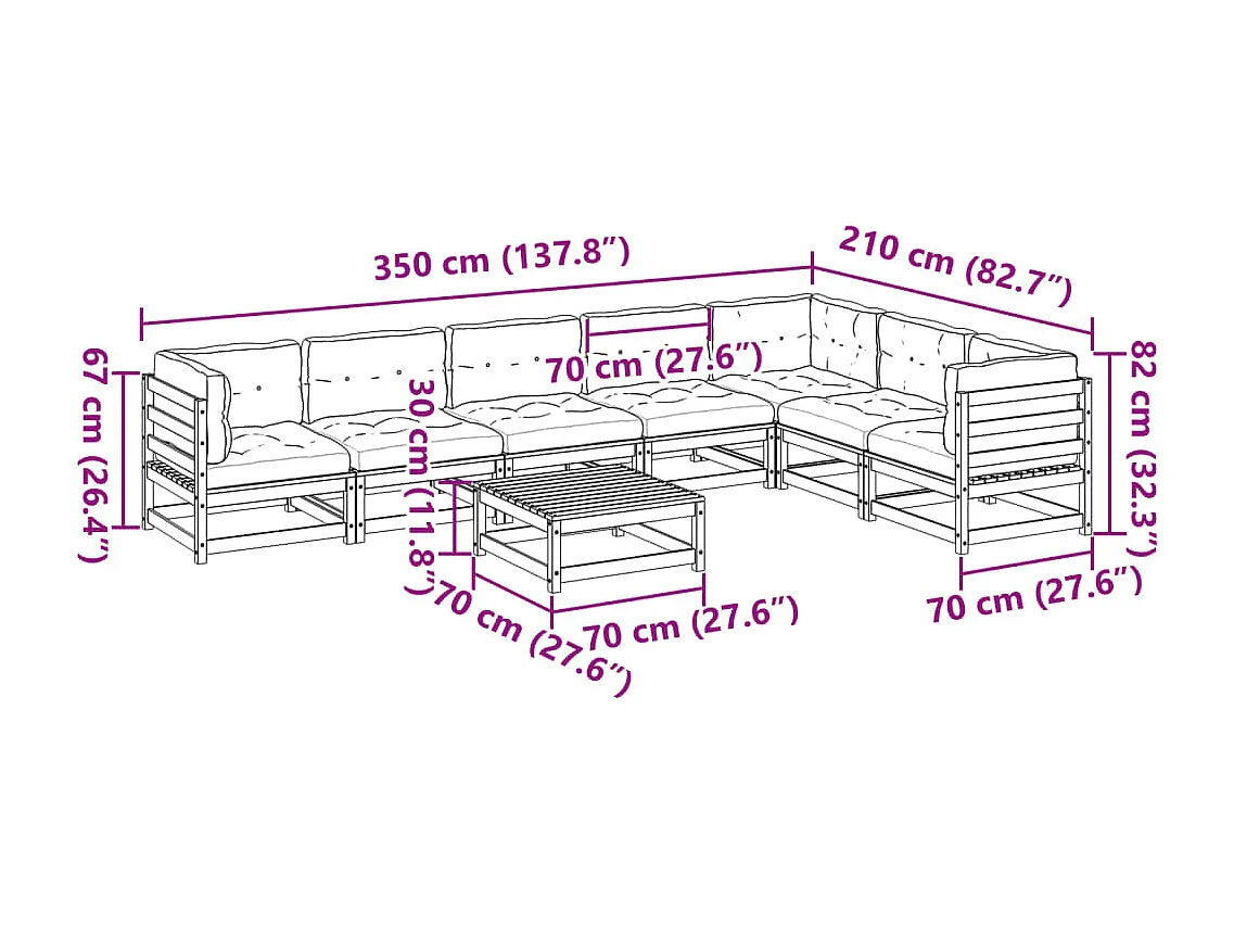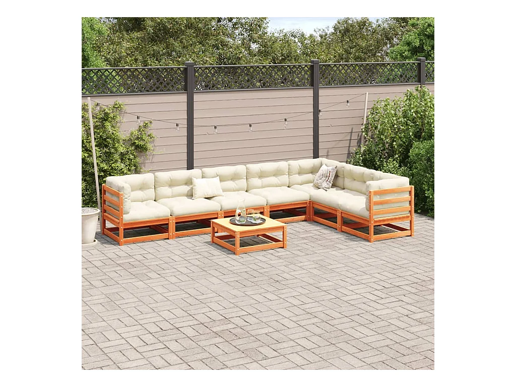 8-tlg. Garten-Sofagarnitur mit Kissen Wachsbraun Kiefernholz