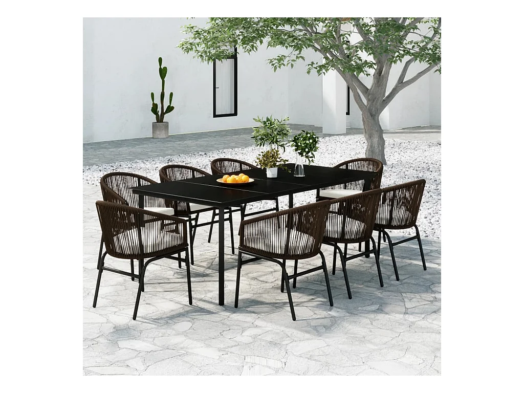 7-tlg. Garten-Essgruppe Braun Poly Rattan