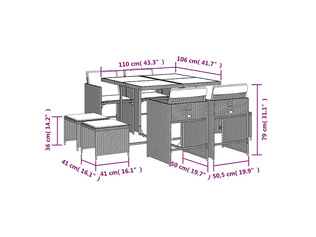 9-tlg. Garten-Essgruppe mit Kissen Grau Poly Rattan