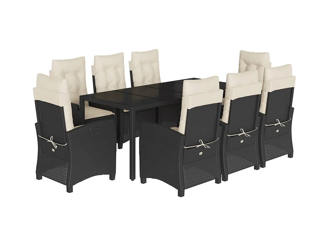 9-tlg. Garten-Essgruppe mit Kissen Schwarz Poly Rattan