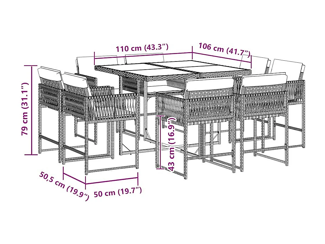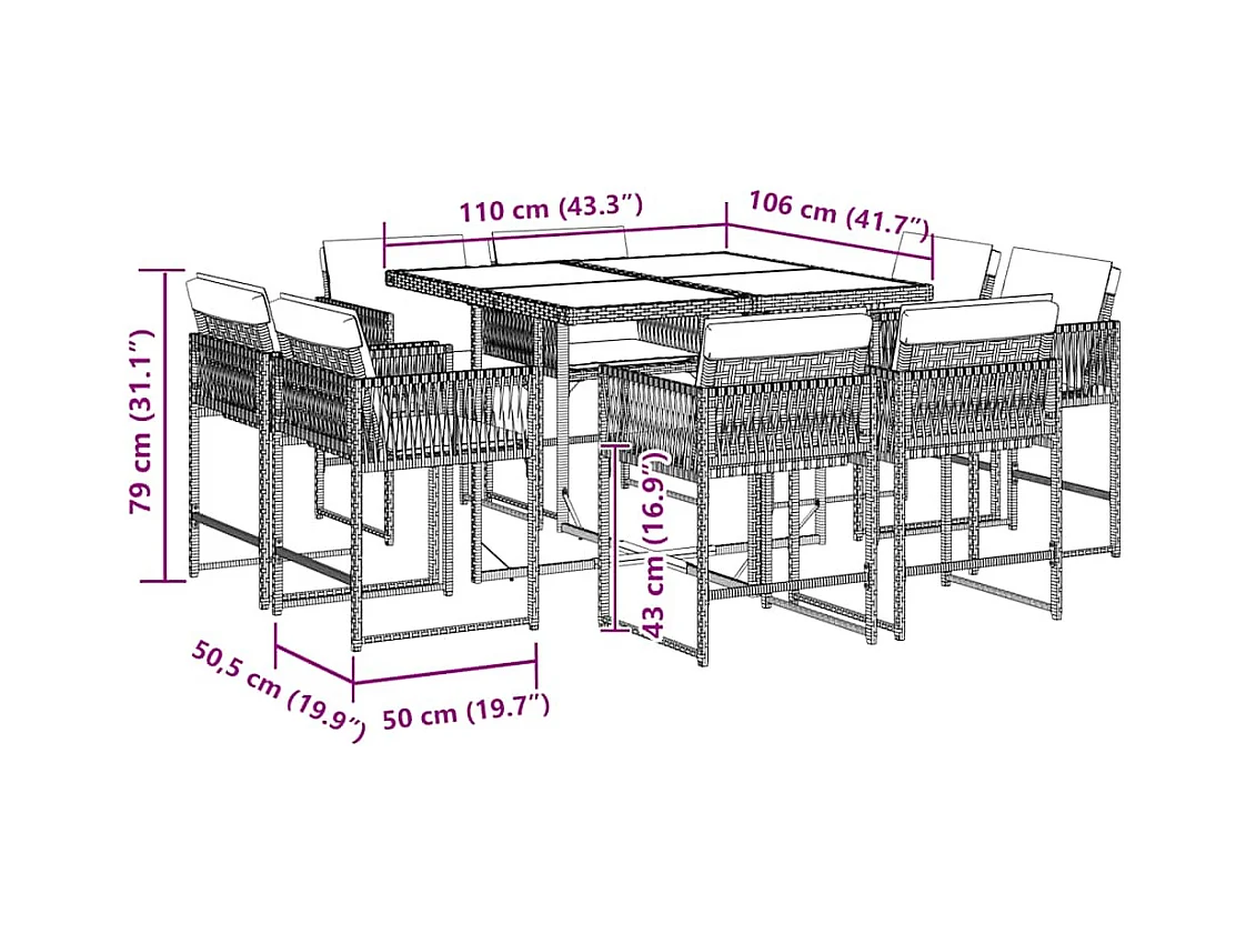 9-tlg. Garten-Essgruppe mit Kissen Schwarz Poly Rattan