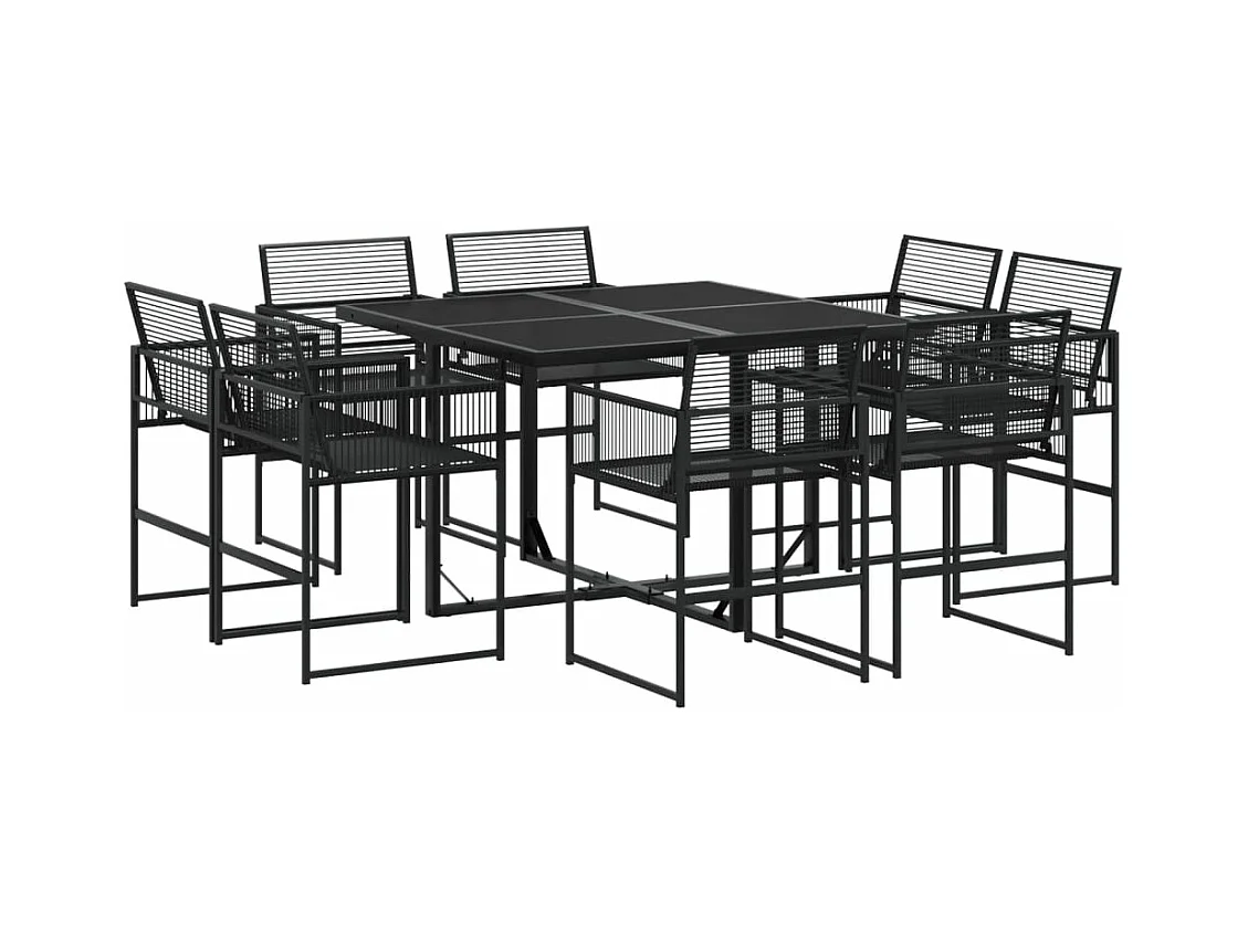 9-tlg. Garten-Essgruppe Schwarz Poly Rattan