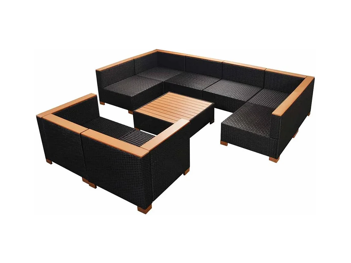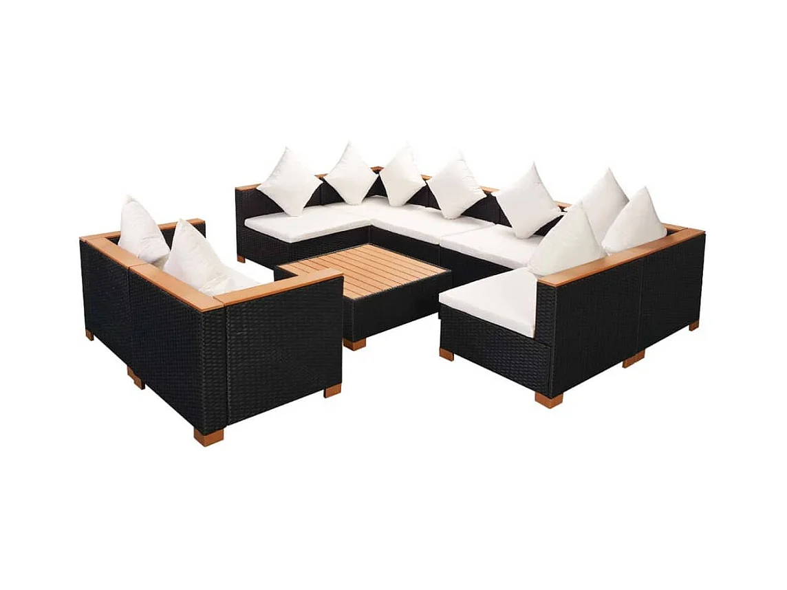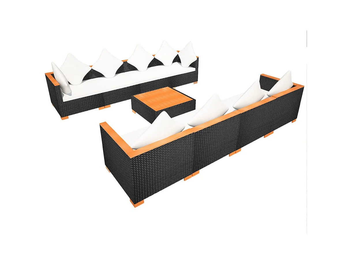 10-tlg. Garten-Lounge-Set mit Auflagen Poly Rattan Schwarz