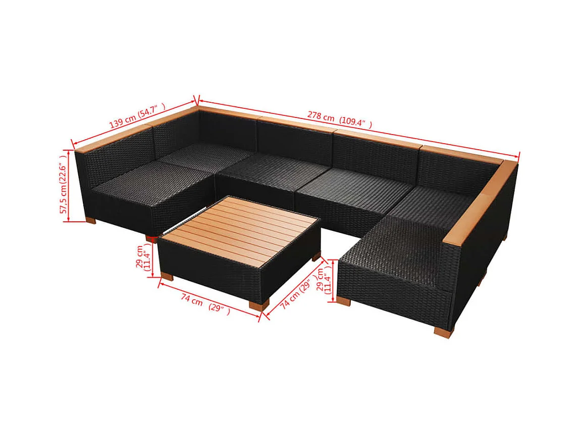 9-tlg. Garten-Lounge-Set mit Auflagen Poly Rattan Schwarz