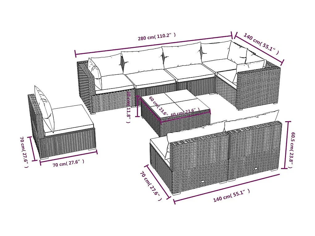 9-tlg. Garten-Lounge-Set mit Kissen Poly Rattan Schwarz