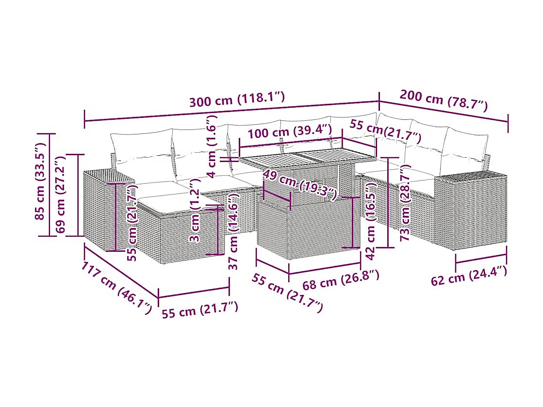 9-tlg. Garten-Sofagarnitur mit Kissen Beige Poly Rattan