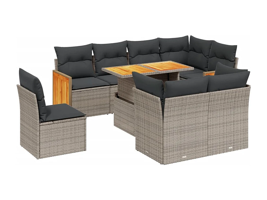 9-tlg. Garten-Sofagarnitur mit Kissen Grau Poly Rattan