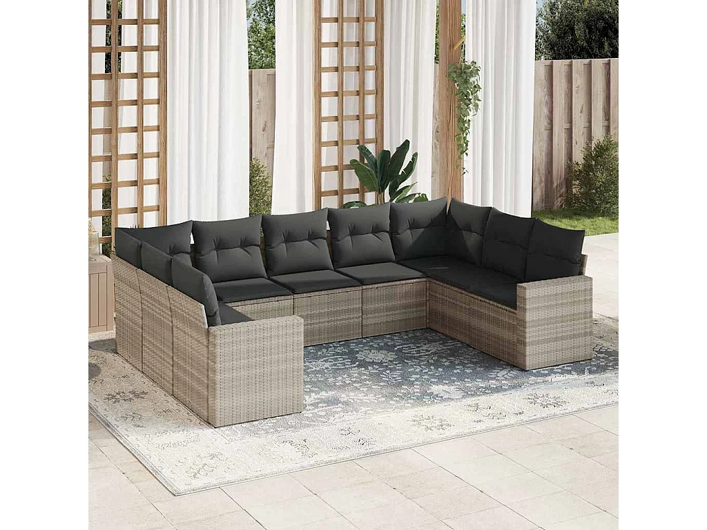 Stück Gartenmöbel mit hellgrauen geflochtenen Harzkissen