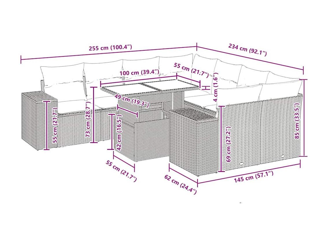 9-tlg. Garten-Sofagarnitur mit Kissen Grau Poly Rattan