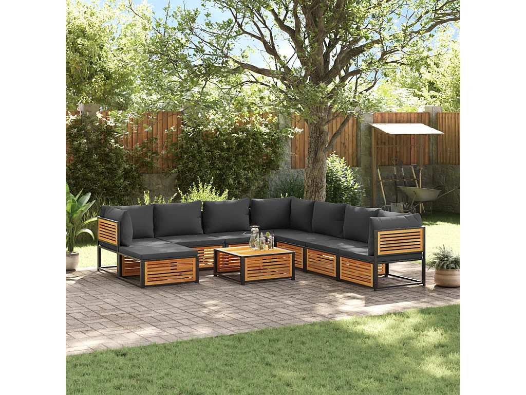 9-tlg. Garten-Sofagarnitur mit Kissen Massivholz Akazie