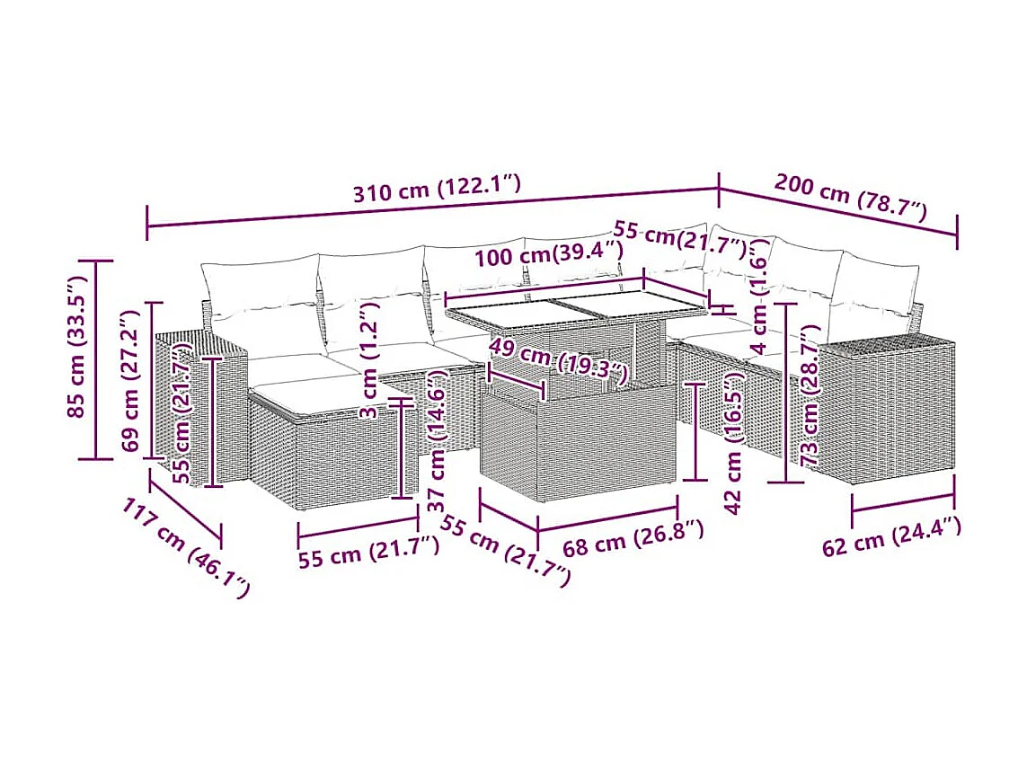 9-tlg. Garten-Sofagarnitur mit Kissen Schwarz Poly Rattan
