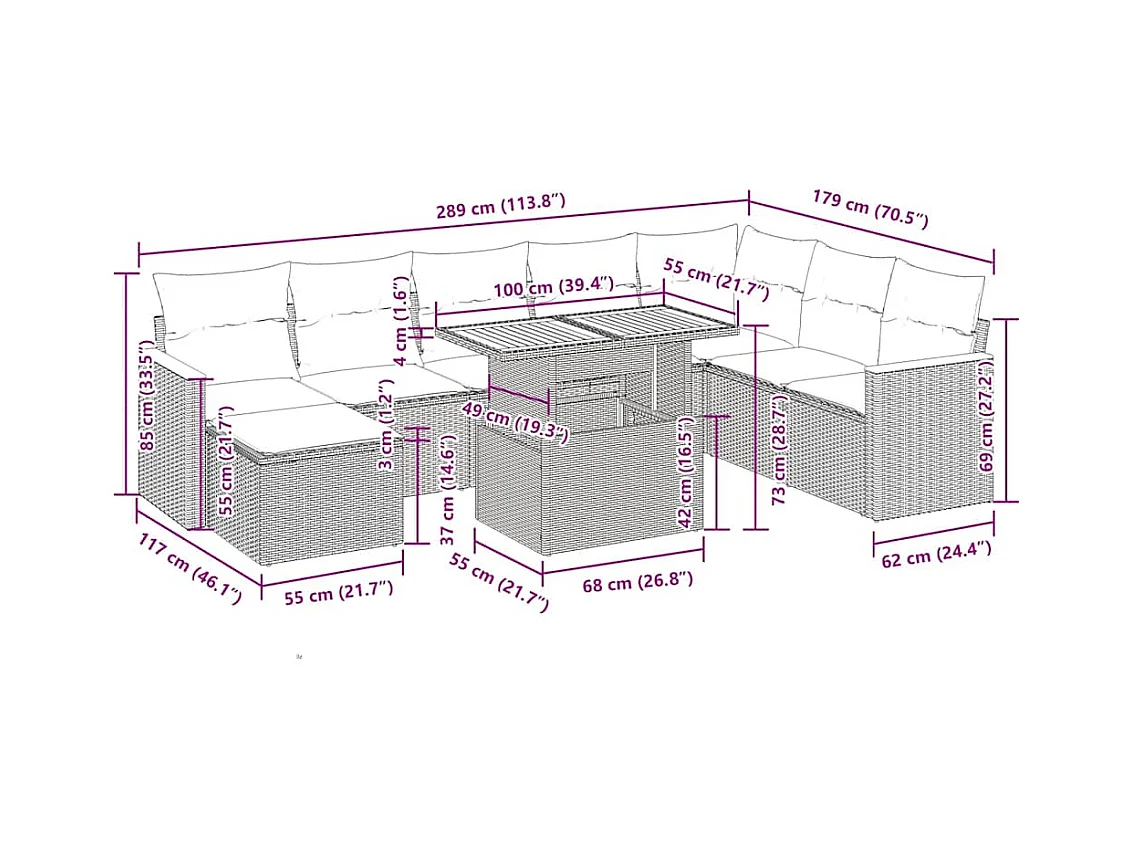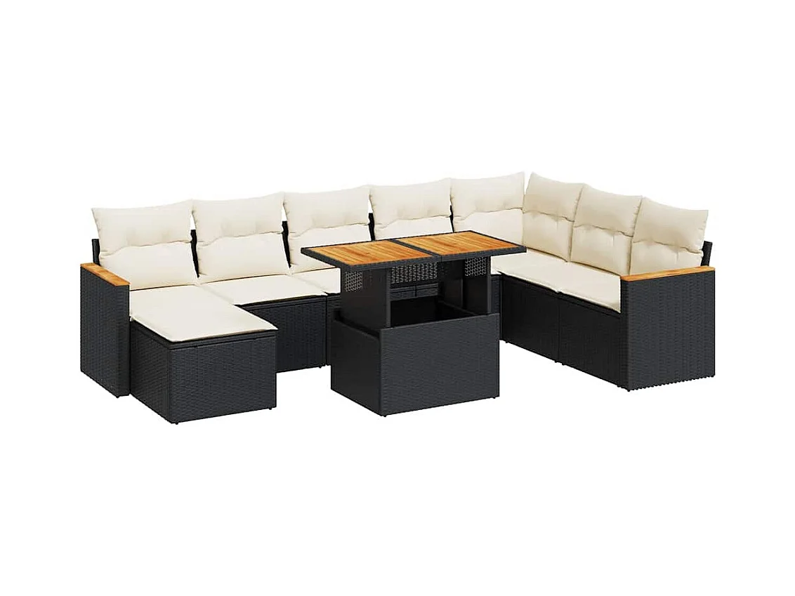 9-tlg. Garten-Sofagarnitur mit Kissen Schwarz Poly Rattan