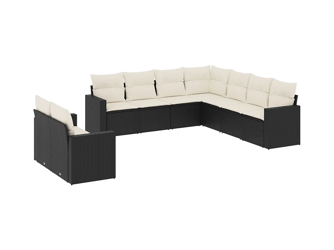 9-tlg. Garten-Sofagarnitur mit Kissen Schwarz Poly Rattan