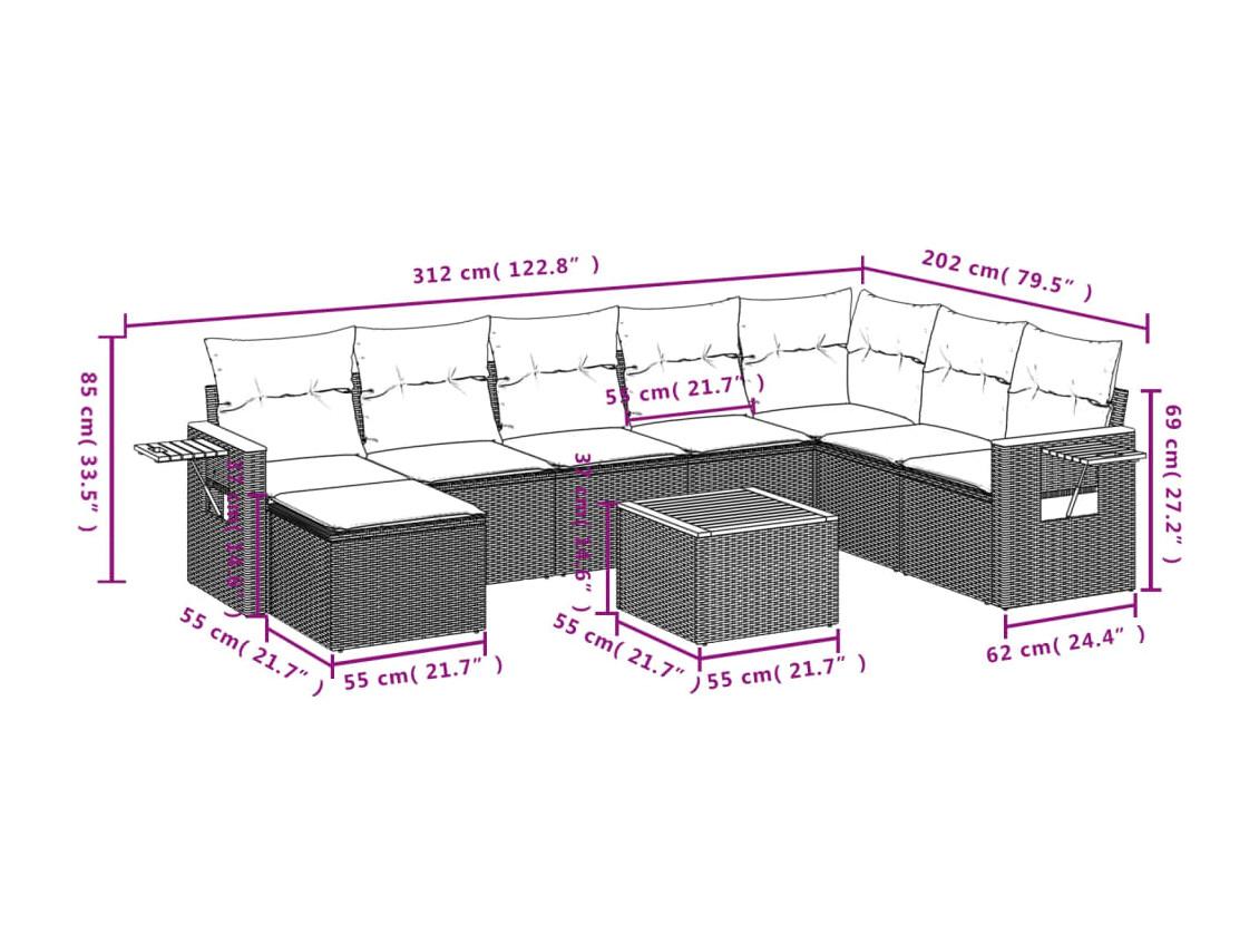 9-tlg. Garten-Sofagarnitur mit Kissen Schwarz Poly Rattan